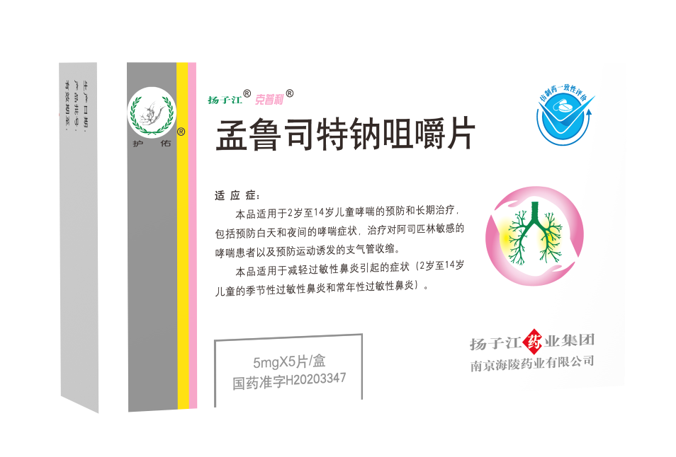【適應(yīng)癥】1.2歲至14歲兒童哮喘的預(yù)防和長期治療,包括預(yù)防白天和夜間的哮喘癥狀,治療對阿司匹林敏感的哮喘患者及預(yù)防運(yùn)動誘發(fā)的支氣管收縮。2.減輕過敏性鼻炎引起的癥狀(2歲至14歲兒童的季節(jié)性過敏性鼻炎和常年性