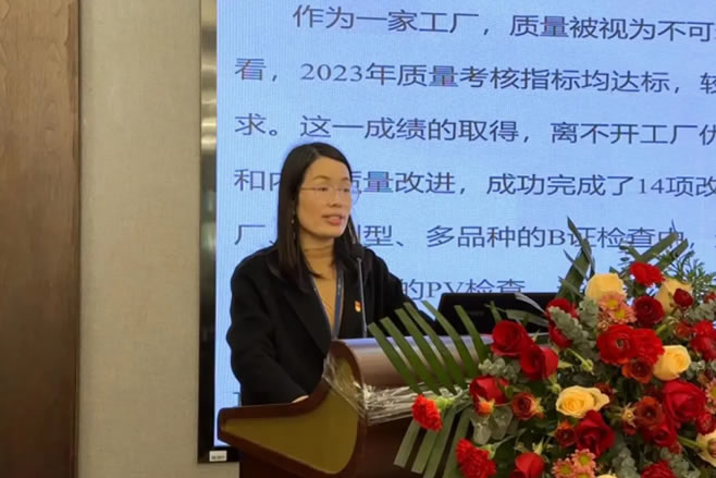 會議伊始,海陵黨支部書記、海陵工廠廠長助理李靜做出以《踔厲奮發(fā)新征程,終身成長再起航》為題的海陵藥業(yè)2023年終工作報告??偨Y了海陵人2023年展現(xiàn)出的拼搏精神和奮斗姿態(tài),以及取得的來之不易的成果,更為海陵明確了2024年的努力方向。