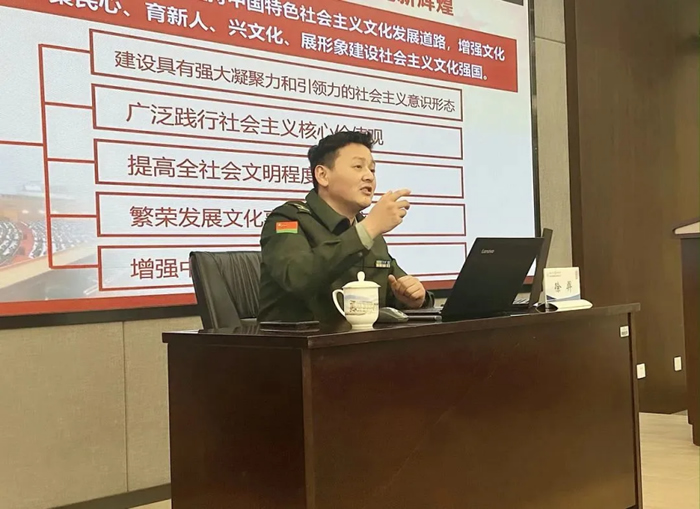 會(huì)議最后,海陵全體黨員及部門負(fù)責(zé)人進(jìn)行了二十大會(huì)議精神集體學(xué)習(xí),陸軍工程大學(xué)“星火”理論宣講隊(duì)成員、陸軍工程大學(xué)政治工作系馬克思主義教研室副主任徐羿教授為全體參會(huì)人員進(jìn)行了二十大報(bào)告專題解讀,主要分為以下幾個(gè)方面: