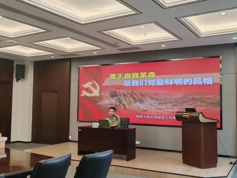 會議的第二項(xiàng),全體與會人員進(jìn)行了專題黨課學(xué)習(xí)。陸軍工程大學(xué)政治工作系曹超副教授為大家進(jìn)行了主題為《勇于自我革命是我們黨最鮮明的品格》的專題匯報(bào)。曹教授肯定了海陵黨支部的凝聚力、戰(zhàn)斗力,并以黃培炎和毛澤東關(guān)于“如何跳出治亂興衰的歷史周期律”的探討為切入點(diǎn),從以下三個(gè)方面進(jìn)行了詳細(xì)闡述: